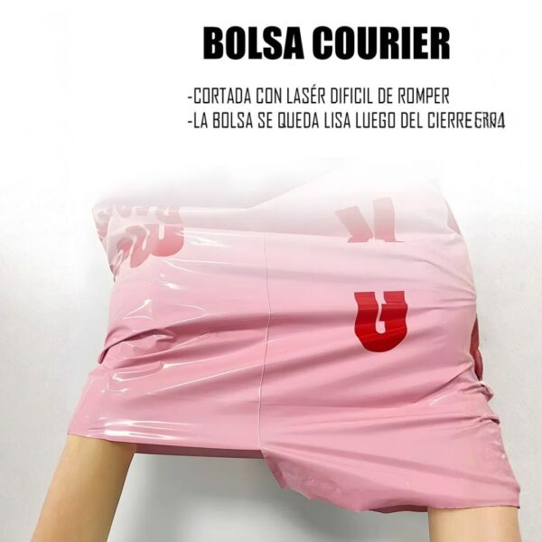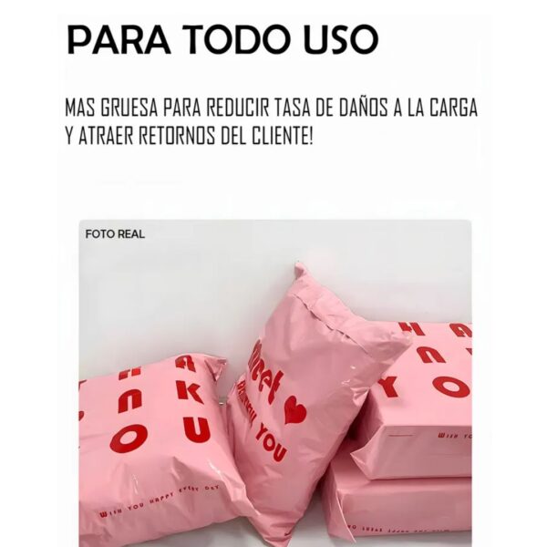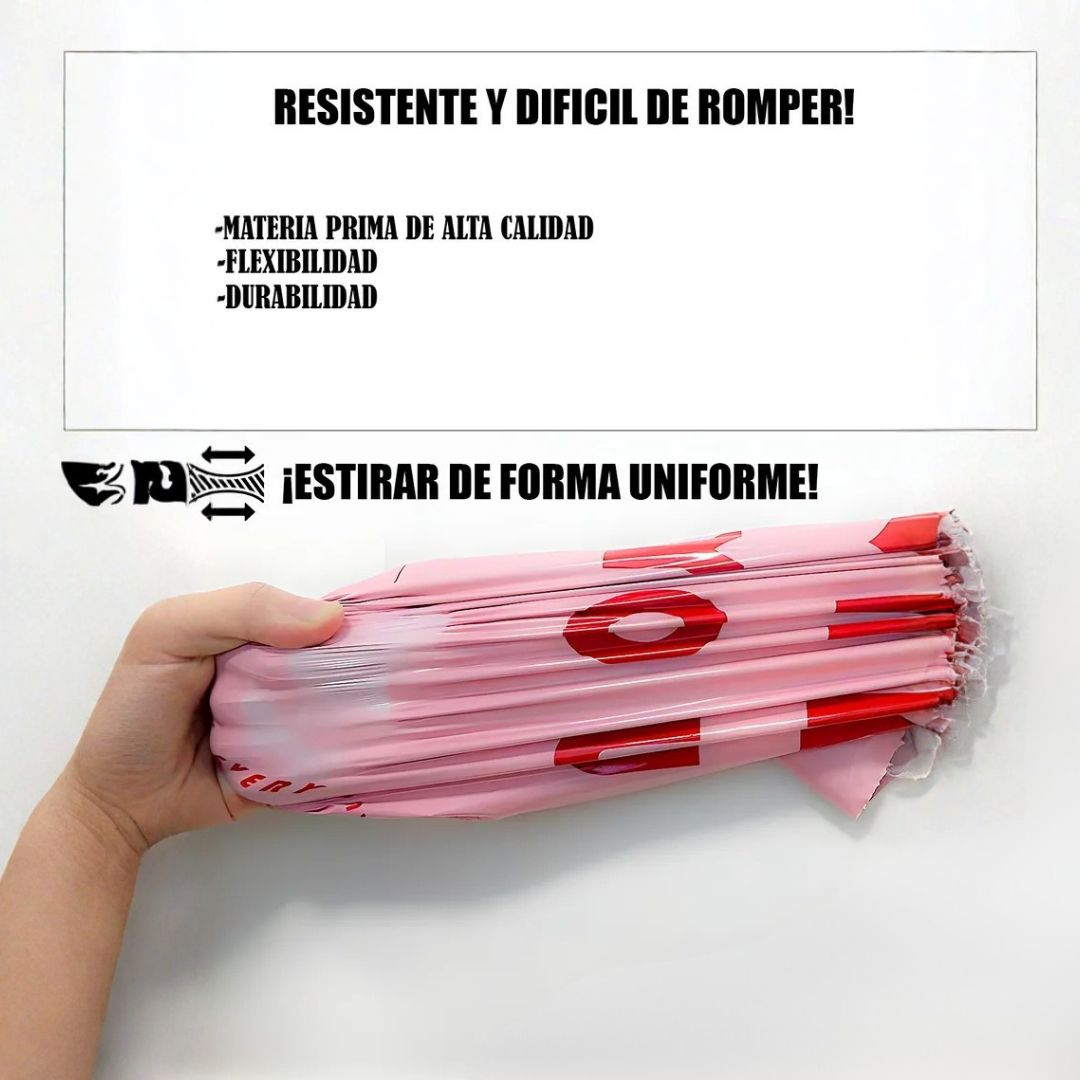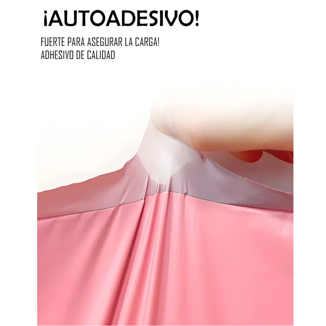 Bolsa de envío color rosa con diseño impreso en letras negras, pensada para empacar y despachar productos de forma segura, práctica y con una presentación más atractiva. Su acabado liso y su color visible ayudan a dar una imagen moderna y diferente en pedidos de tiendas online, emprendimientos y negocios que buscan destacar su empaque.