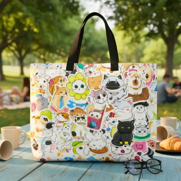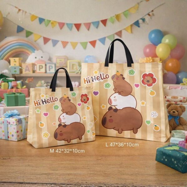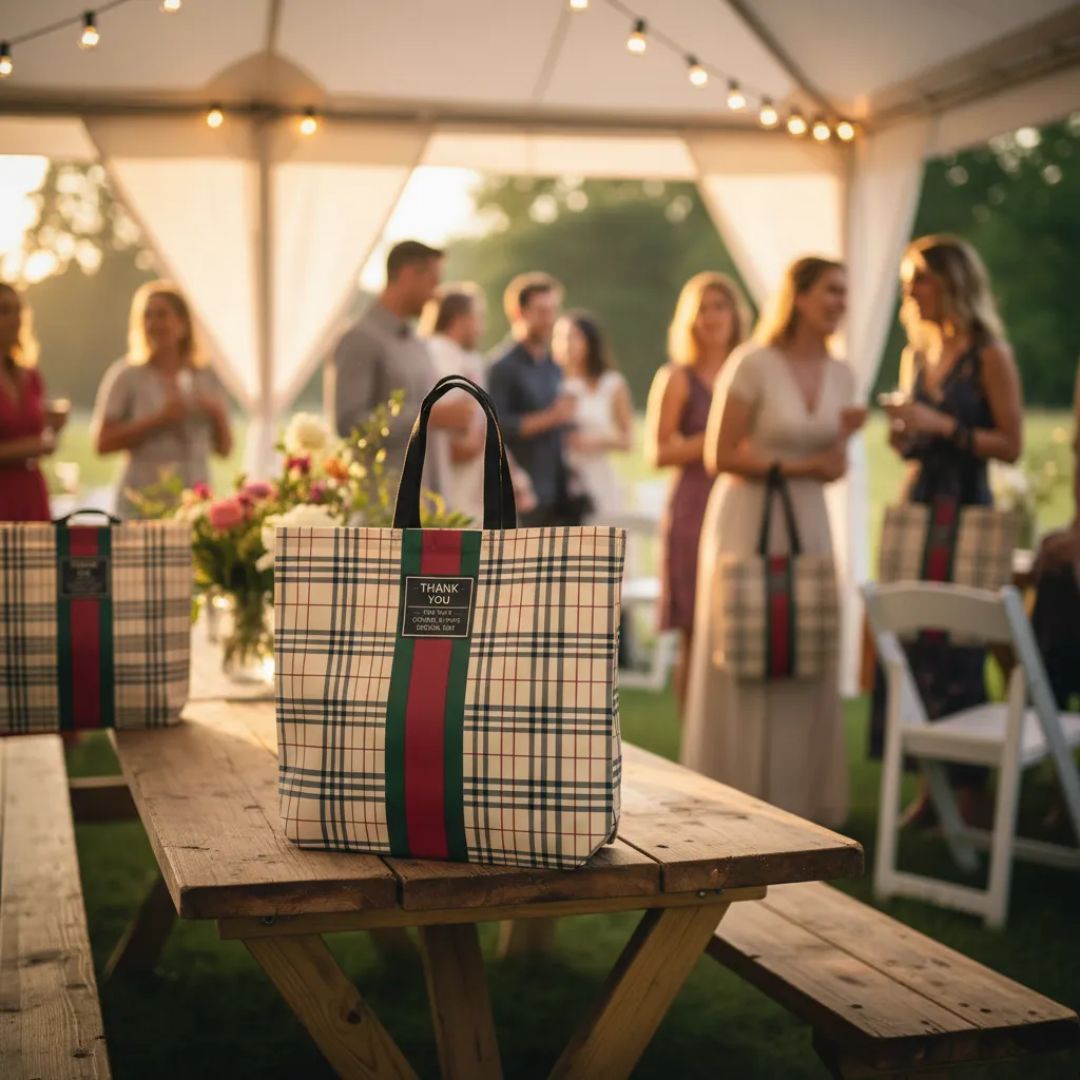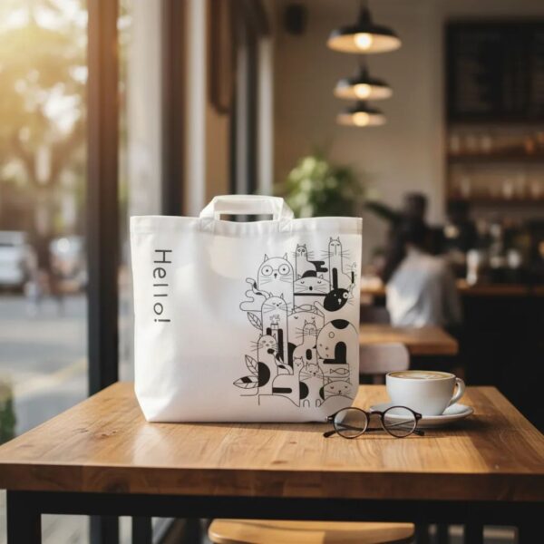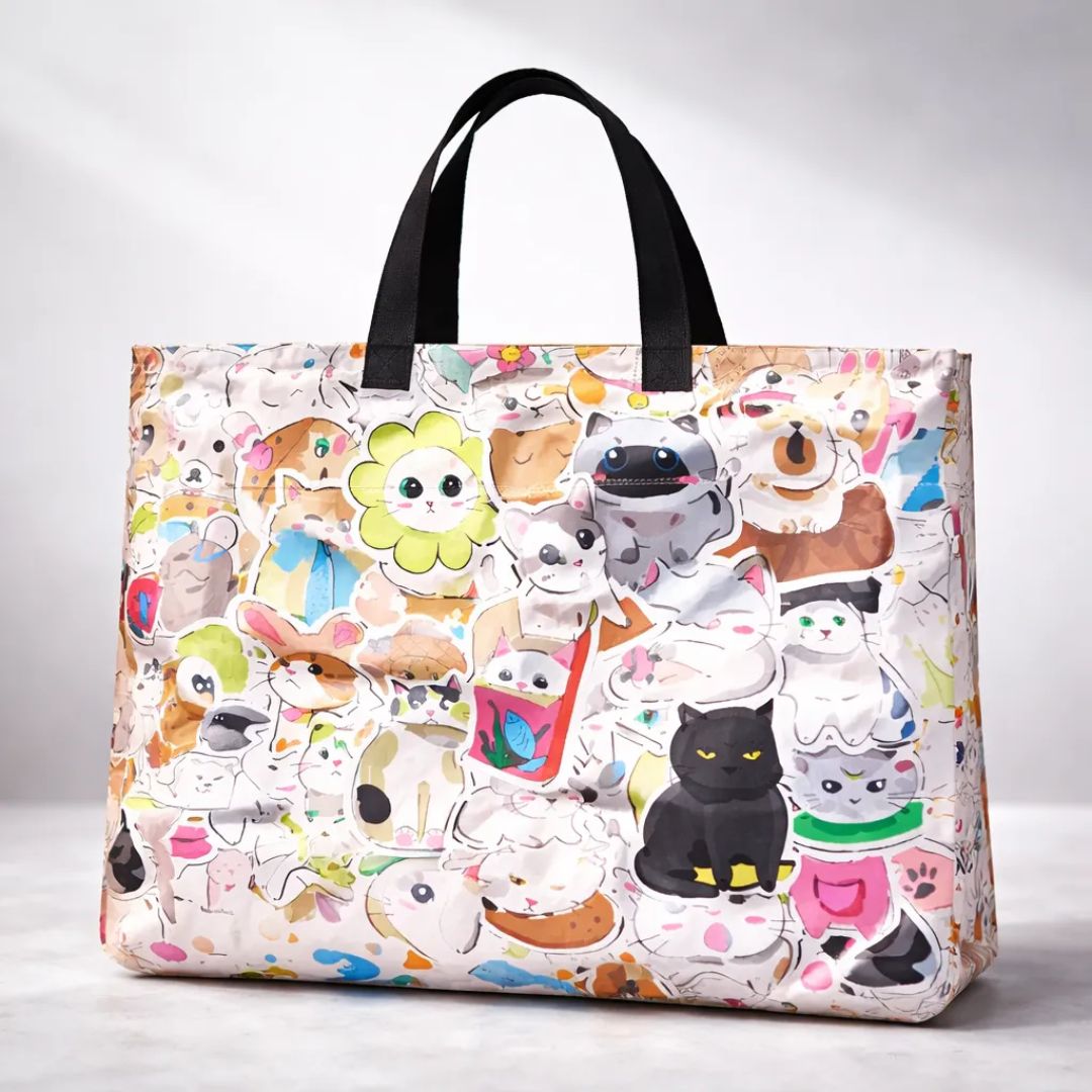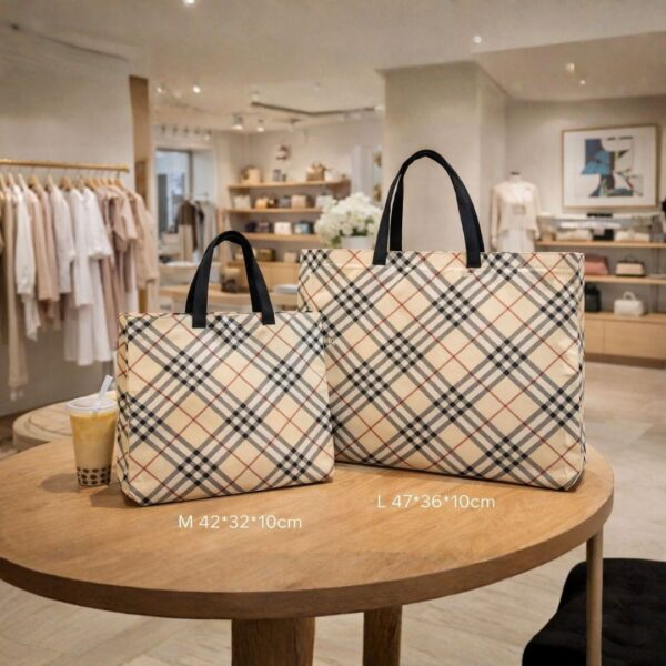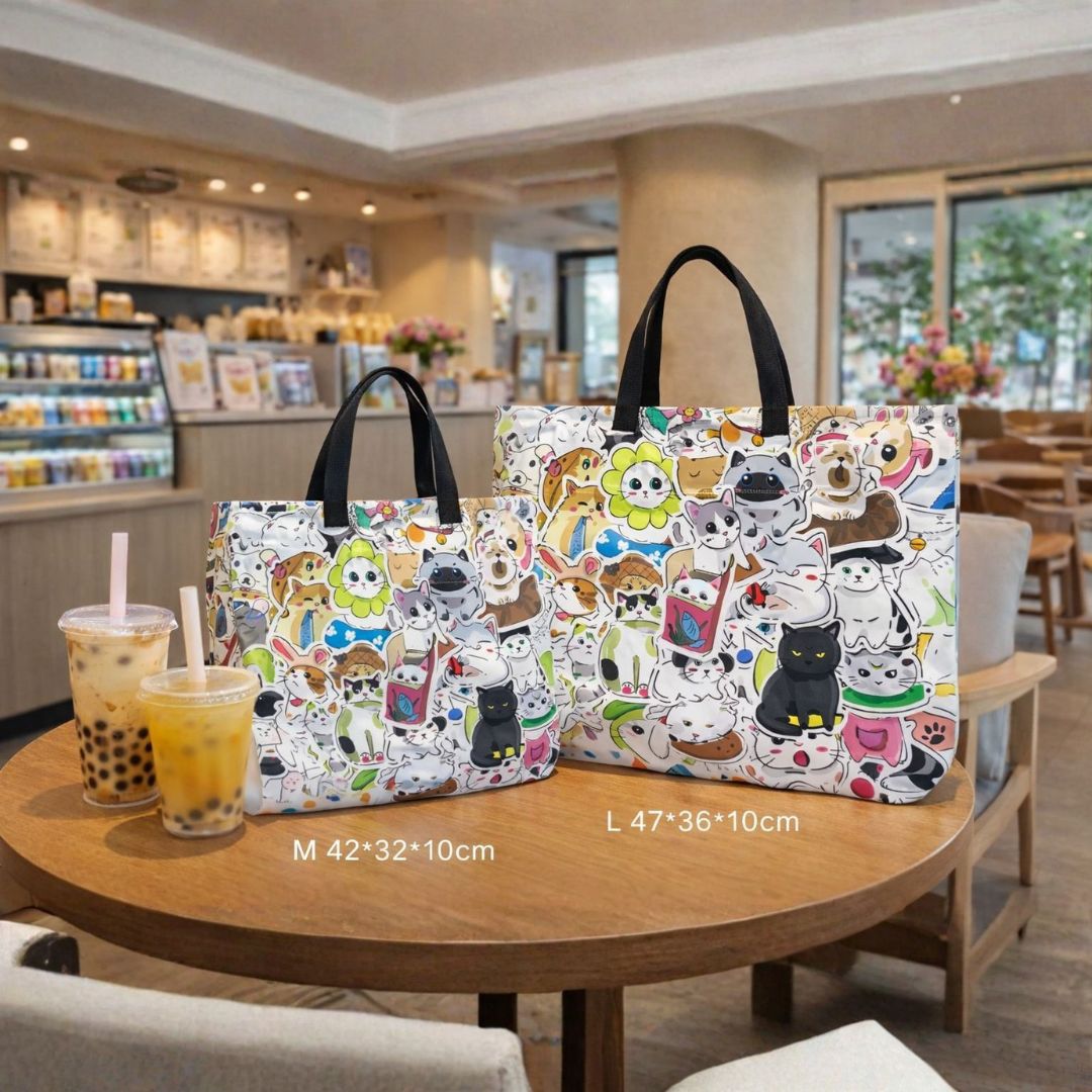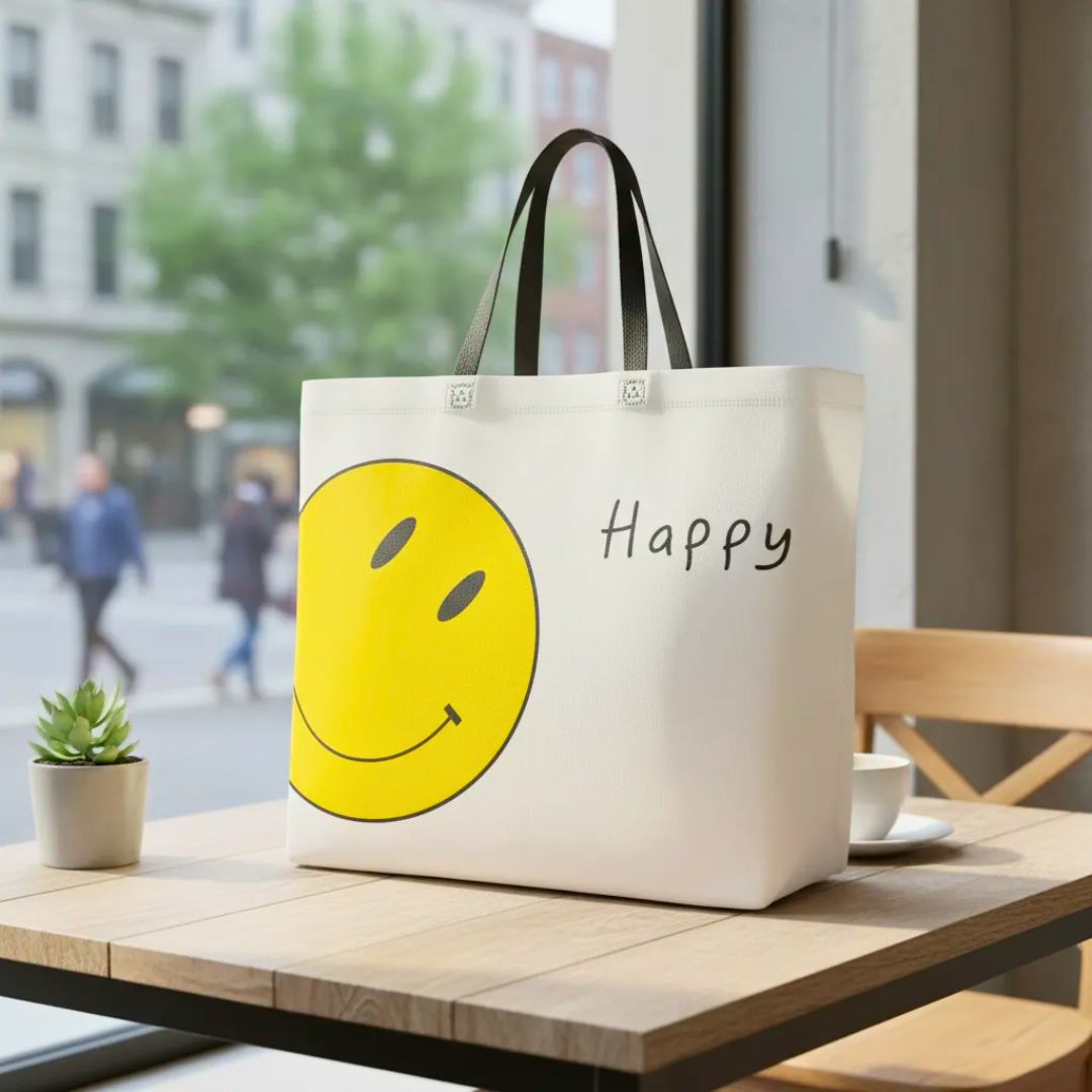 Bolsa reutilizable premium con asas, ideal para tiendas, regalos y compras. Disponible en dos tamaños y con diseños modernos para una mejor presentación.