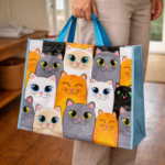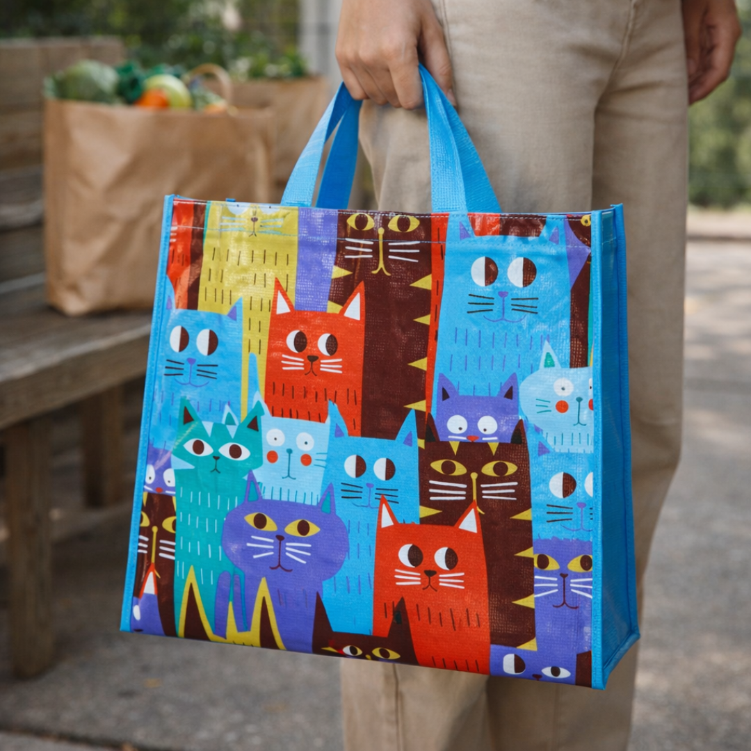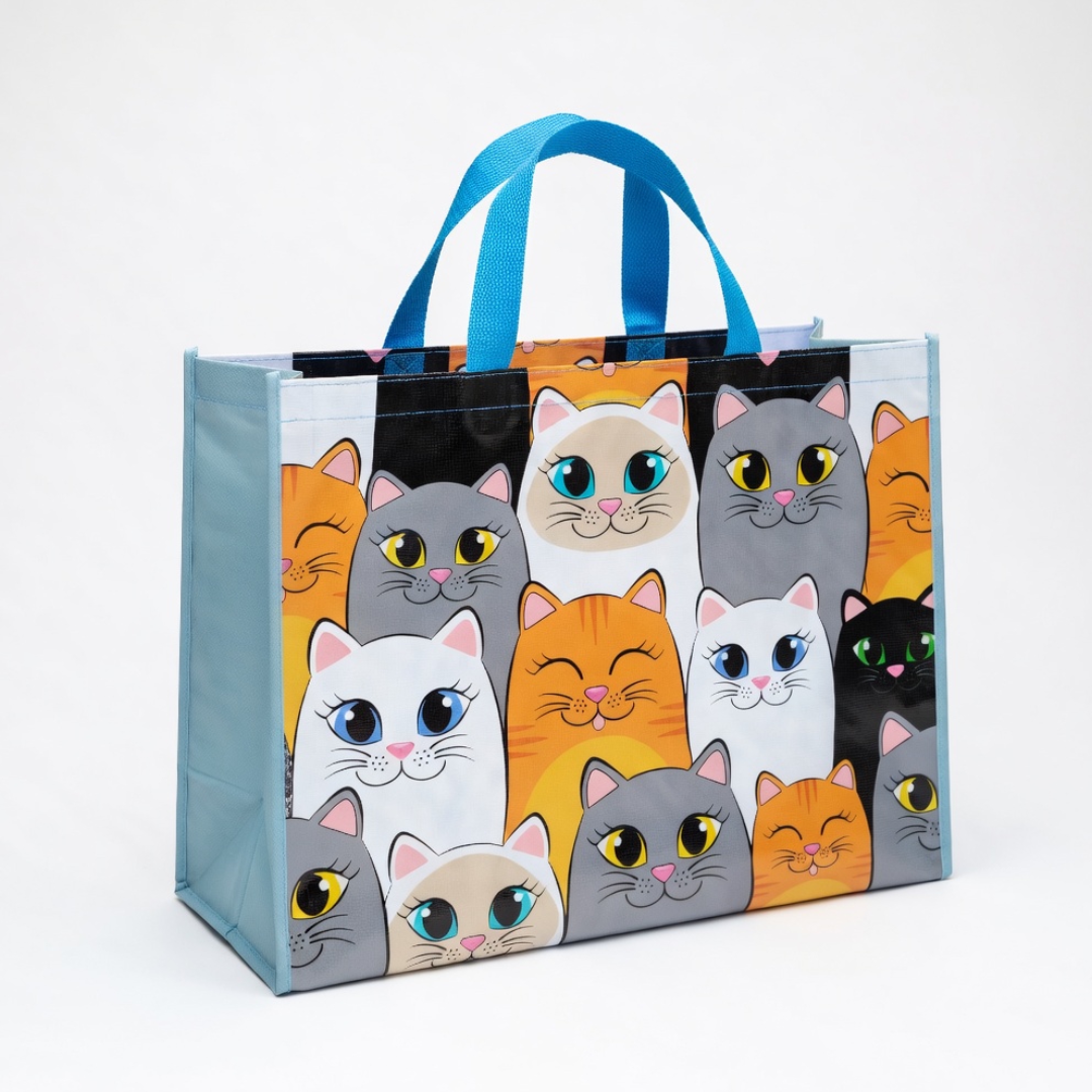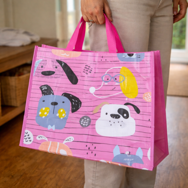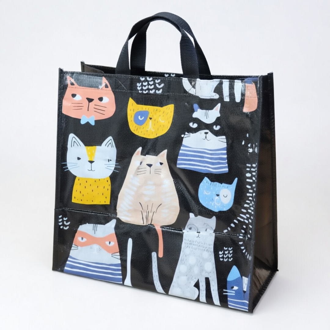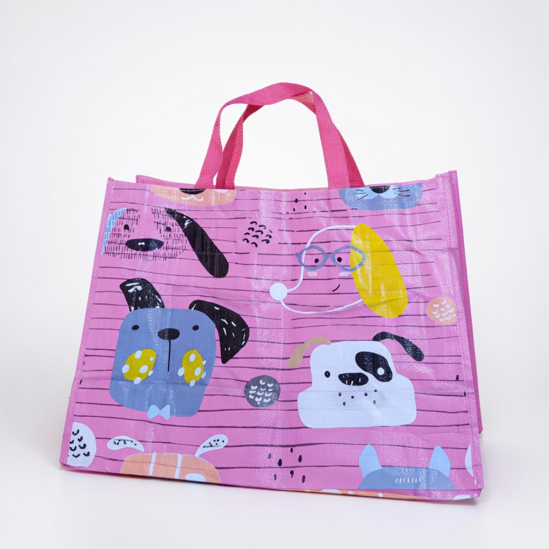 Esta bolsa reutilizable con diseño de animales es una opción práctica y funcional para llevar compras, obsequios o artículos de uso diario. Su formato amplio y sus asas superiores permiten transportarla con comodidad, mientras que sus estampados coloridos la convierten en un producto atractivo para distintos gustos. Está dirigida a personas que buscan una bolsa resistente, reutilizable y con diseño decorativo, ideal para uso personal, comercial o como detalle para regalo.