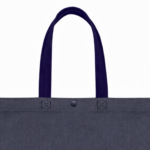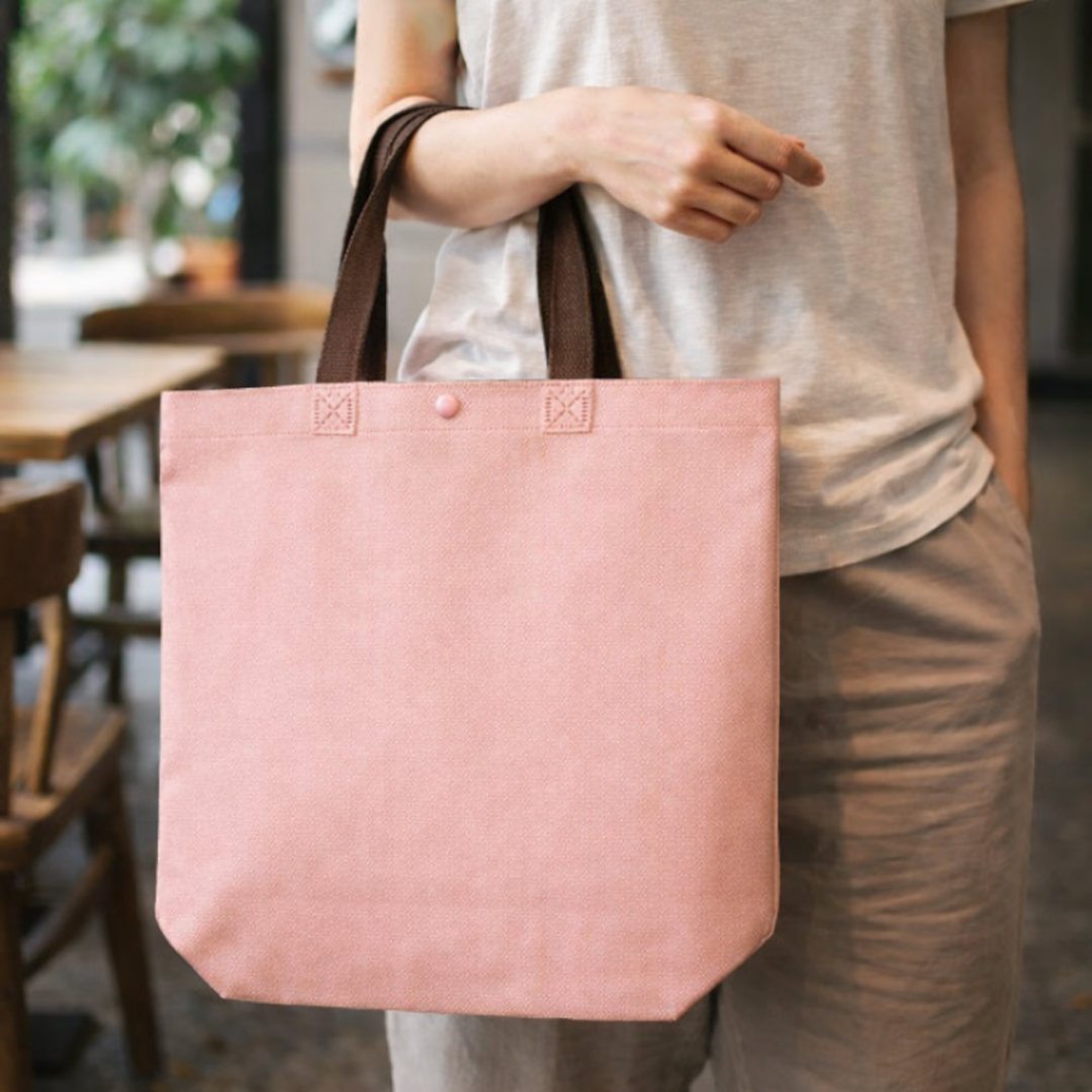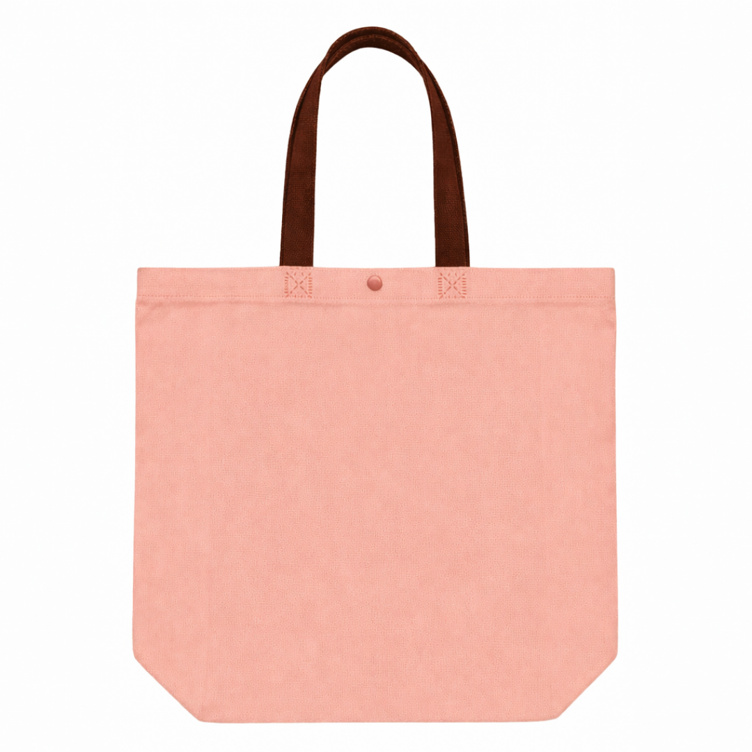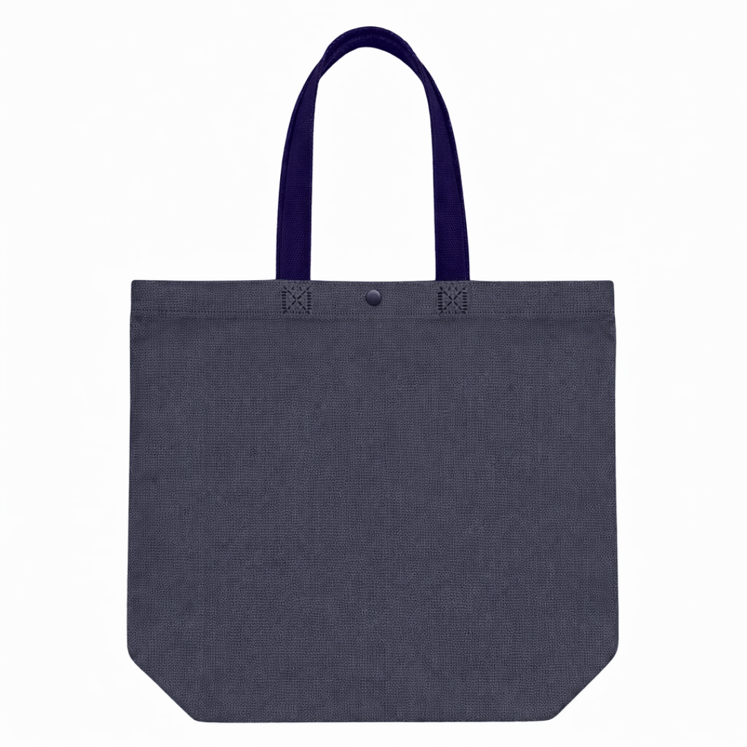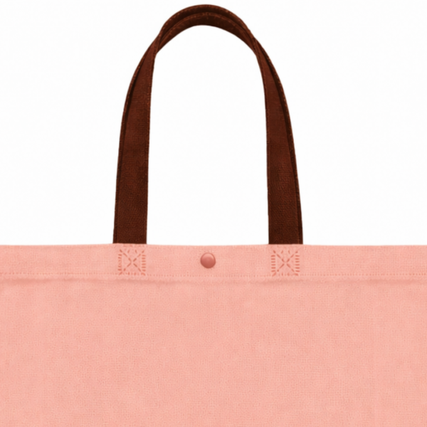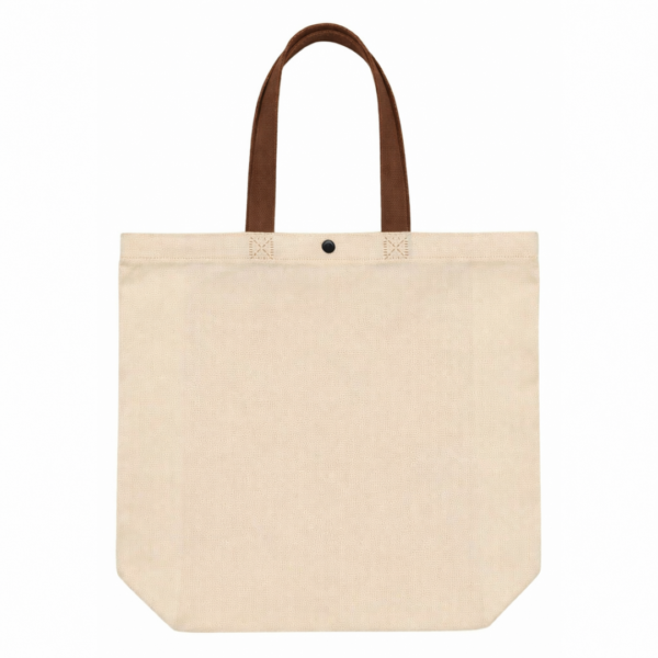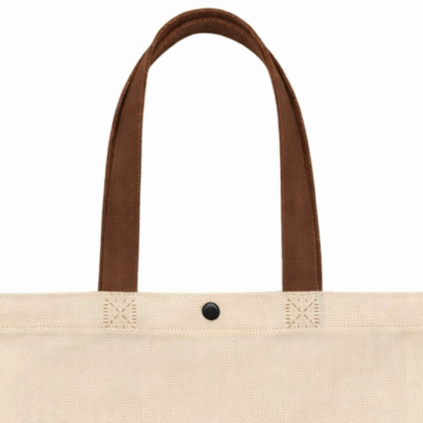 Cuenta con asas largas para llevar cómodamente en la mano o al hombro, además de un botón de cierre en la parte superior que ayuda a mantener el contenido más resguardado. Las costuras reforzadas visibles en la unión de las asas aportan mayor firmeza en el uso frecuente. Es una opción útil para compras, ferias, regalos, retail, oficina, emprendimientos y actividades diarias.