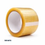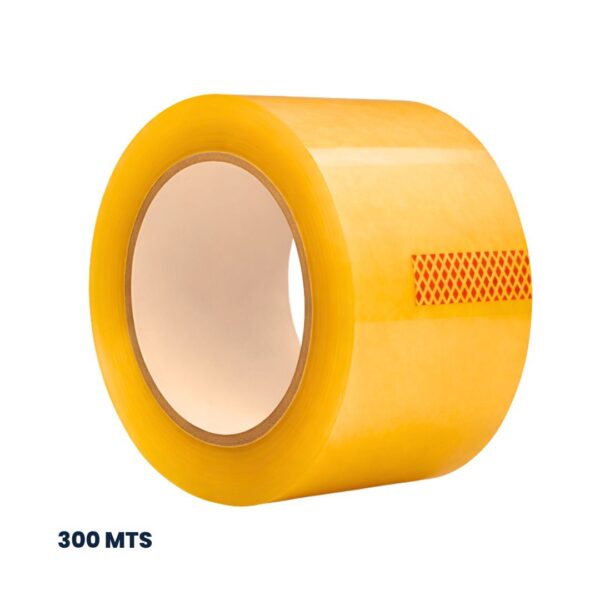 Cinta de embalaje transparente en rollo de 100 y 300 metros, ideal para sellar cajas, paquetes y productos de forma práctica en hogar, oficina o negocio.